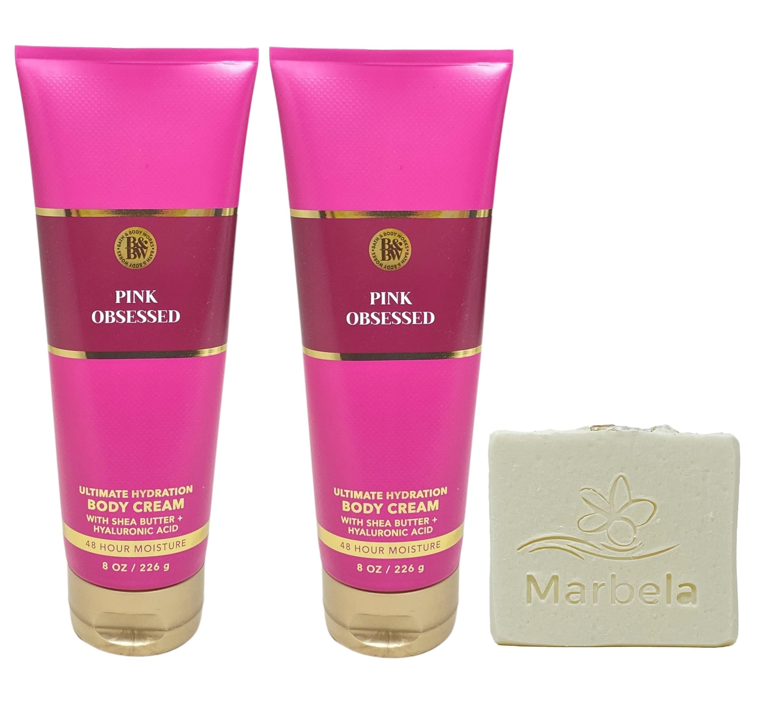 Bath Body Works Womens Pink Obsessed Ultimate 2 Hydration Body Cream with a with Natural Oats Soap Ingredients: Saponified Oils of: Olive Oil, Organic Virgin Coconut Oil, Shea Butter, Sweet Almond Oil, Castor Oil, Vitamin E, Oats, Titanium Dioxide) (Soap May Vary)