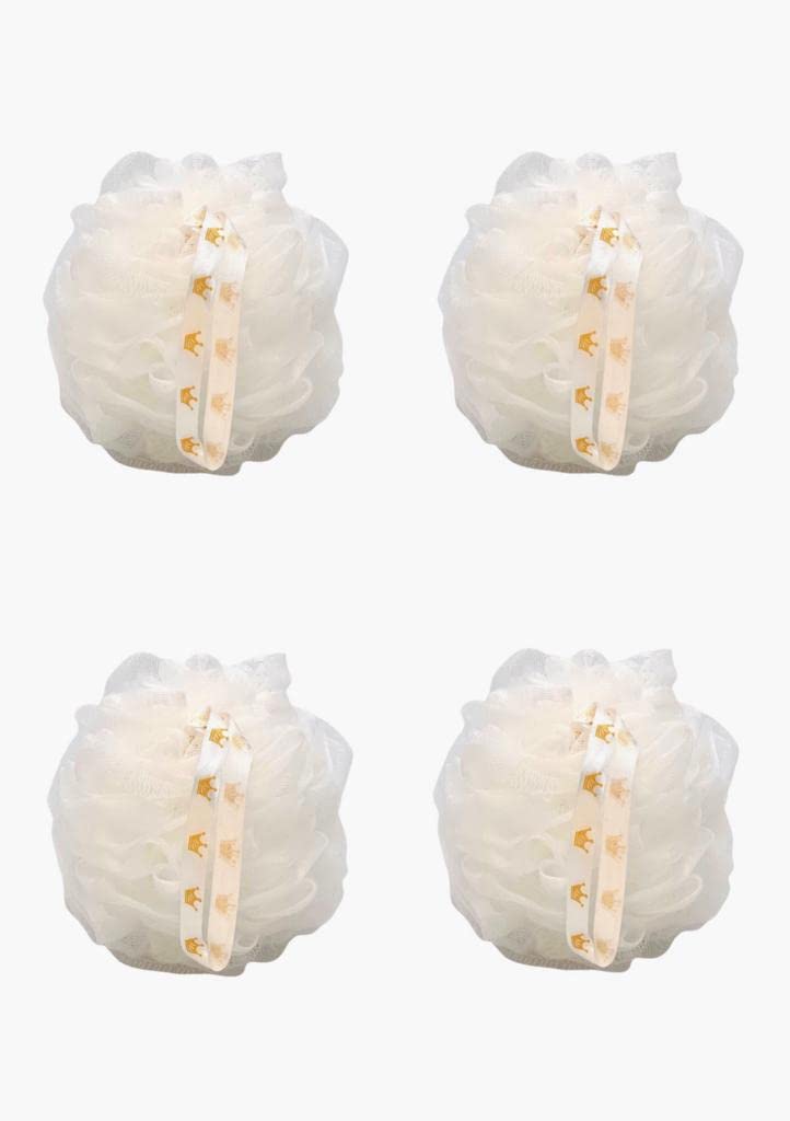 MEDIUM-SIZED and LONG HANDLE. GREAT GIFT IDEA: ( great for gifts; Mothers Day, Valentines Day, Wedding Shower or Birthday). Ideal for Men & Women. Soft Texture. Full Cleanse & Lather. White Set of 4 Bath Sponge.