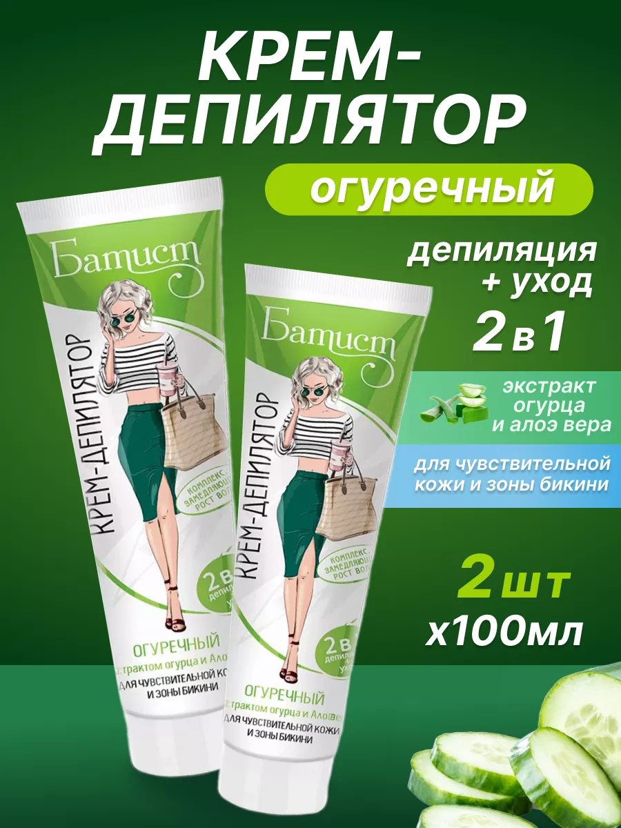 БАТИСТ Крем депилятор Огуречный 100 мл набор 2 шт