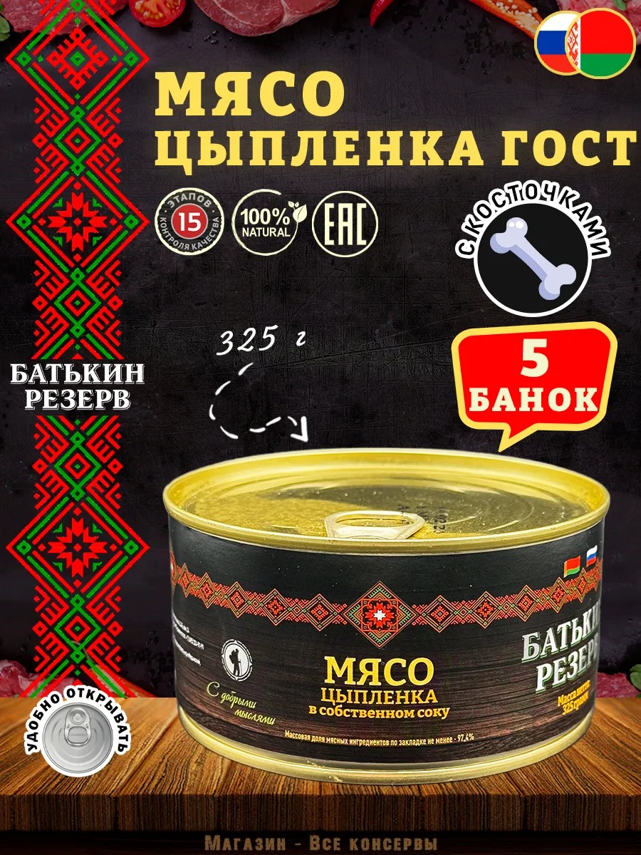 Батькин Резерв Мясо цыпленка в собственном соку ГОСТ, 325 г