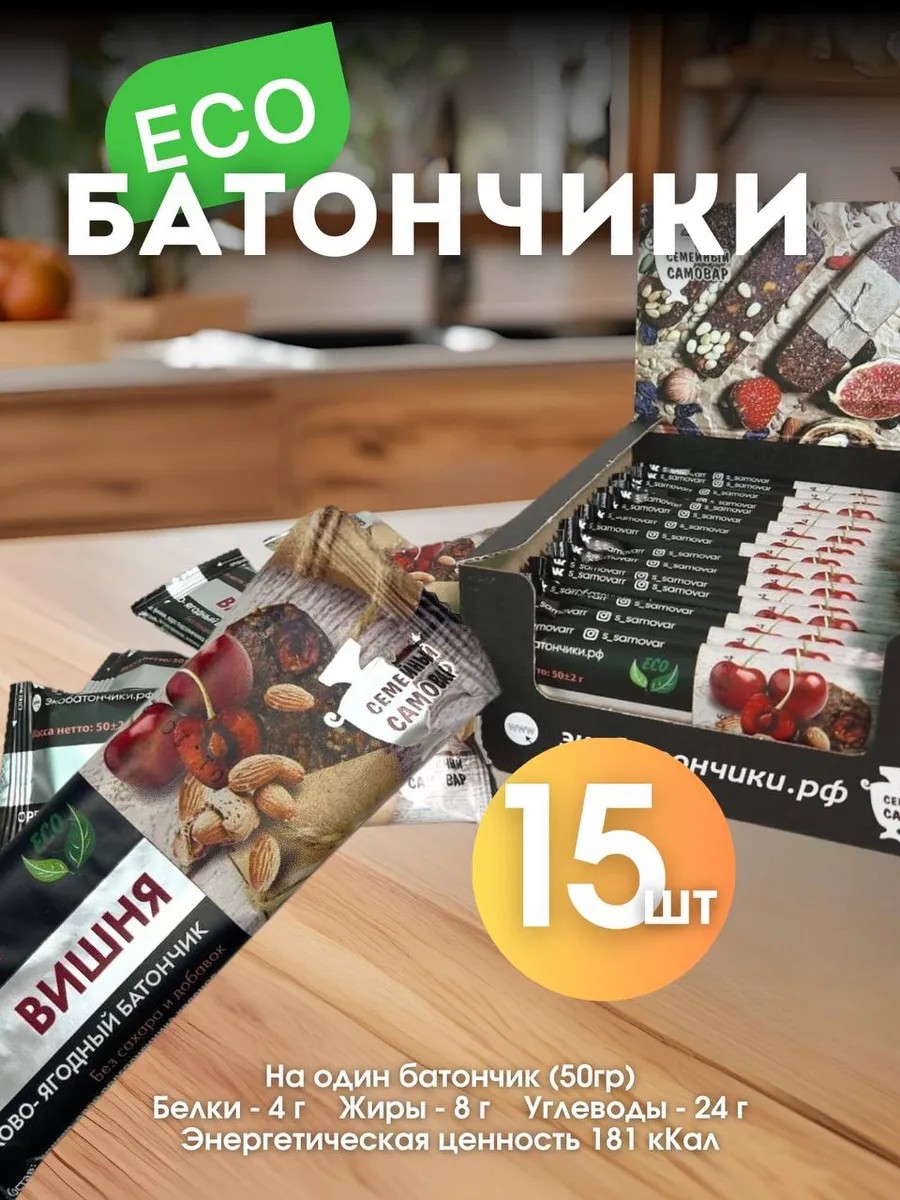 Батончик без сахара Фруктово-Ореховый "Вишня" 50гр 15шт