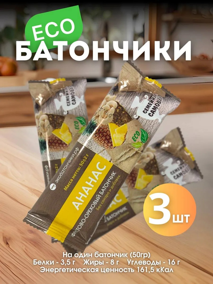 Батончик без сахара Фруктово-Ореховый "Ананас" 50 гр 3шт