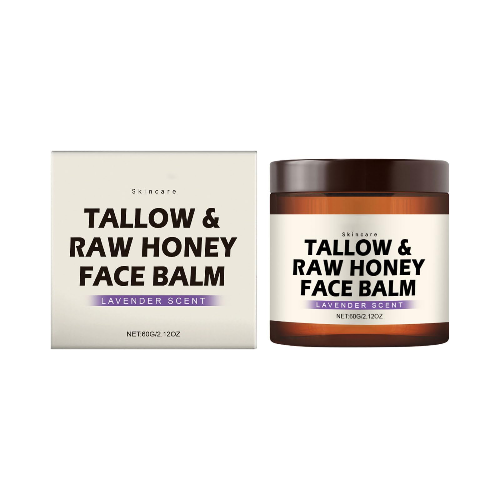 Improves Skin Glow Texture: Regular use helps enhance skin's natural radiance and overall texture, leaving it looking smoother and more revitalized. Suitable for All Skin Types: Gentle ingredients make it safe for daily use on all skin types, including sensitive skin, promoting a healthy-looking complexion. Non-Pore Clogging Formula: Lightweight balm absorbs easily without leaving a greasy residue or clogging pores, making skin feel soft and smooth. Soothes Revitalizes Dryness: Specially formulated to relieve dry, tight skin, providing a comforting, soothing experience with a calming lavender scent. Deep, Long-Lasting Moisture: Tallow and raw honey deliver intense nourishment and hydration, effectively combating dryness and keeping skin supple for hours.