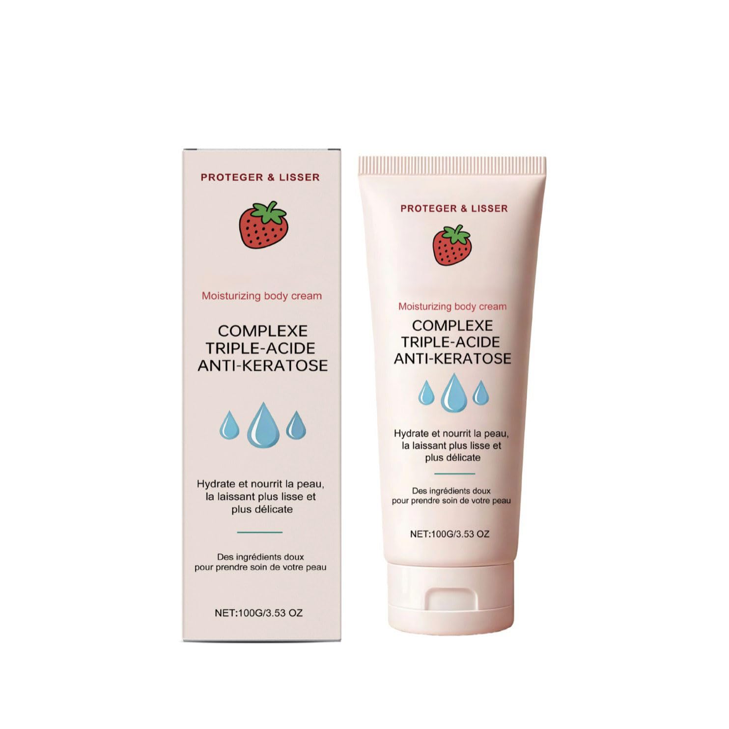 Gentle for Daily Full-Body Use: Its gentle and safe formula is suitable for all skin types, making it a perfect essential for daily full-body skincare routines to maintain healthy, radiant-looking skin. Fast-Absorbing Non-Greasy: The lightweight, dermatologically-developed cream absorbs quickly into the skin without leaving any sticky or heavy residue, allowing for immediate comfort and clothing. Delivers Long-Lasting Hydration: Infused with hydrating powerhouses like Glycerin, it deeply moisturizes and helps lock in moisture, ensuring your skin stays nourished and comfortable throughout the day. Targets Rough Body Areas: Specifically formulated to provide targeted care for stubborn rough spots on elbows, knees, and heels, promoting visibly softer and more even-toned skin. Smooths Refines Skin Texture: Features a Triple-Acid Complex with Glycolic, Lactic, and Salicylic Acids that gently exfoliates to smooth rough patches and improve overall skin texture for a delicate, supple feel.
