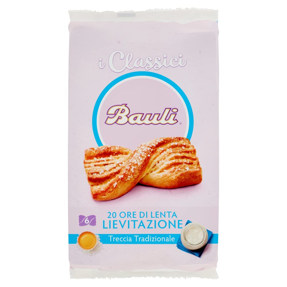 Breakfast Harmony: A puff pastry with an authentic and mild flavor, where tradition meets taste in a unique blend of sweetness. Ingredients: Wheat flour, vegetable margarine (palm fat, water, sunflower oil), sugar, candied orange paste (orange peel, fructose syrup, sugar), natural yeast (gluten), fresh eggs, emulsifiers: mono- and diglycerides of fatty acids, skimmed milk powder, butter, yeast, parsley, salt, flavorings. May contain traces of soy. Average values per 100g: Energy 1861 kJ 445 kcal Fat 22g, of which saturates 12g Carbohydrate 53g, of which sugars 26g Fiber 1.8g Protein 7.6g Salt 0.43g INGREDIENTS: Wheat flour, vegetable margarine (palm fat, water, sunflower oil), sugar, candied orange paste (orange peel, glucose and fructose syrup, sugar), natural yeast (gluten), fresh eggs, emulsifiers: mono- and diglycerides of fatty acids, skimmed milk powder, butter, yeast, gluten, salt, flavorings.Bauli Treccia Tradizionale Tresse de pâte feuilletée traditionnelle Paquet de 240 g, chaque paquet contient 6 tresse de 40 gDESCRIPTION DU PRODUIT DESCRIPTION DU PRODUIT Harmonie au petit déjeuner Une pâte feuilletée au goût authentique et doux, pour un goût qui rencontre la tradition dans un mélange unique de sucré. Ingrédients de la farine de blé, de la margarine végétale (graisse de palme, eau, huile de tournesol), du sucre, de la pâte d'orange confitée (écorces d'orange, sirop de fructose, sucre), levure naturelle (gluten), œufs frais, émulsifiants : mono- et diglycérides d'acides gras alimentaires, poudre de lait écommé, beurre. TER, JOGHUR. TPULVER, sel, arômes. Peut contenir des traces de soja. Valeurs moyennes pour 100 g d'énergie 1861 kJ 445 kcal Graisse 22 g dont acides gras saturés 12 g glucides 53 g dont sucre 26 g fibres 1,8 g protéines 7,6 g sel 0,43 g INGRÉDIENTS farine de BLÉ, margarine végétale (graisse de palme, eau, huile de tournesol), sucre, pâte d'orange confite (zeste d'orange, sirop de glucose et fructose, sucre), levure naturelle (GLUTEN), oeufs frais, émulsifiants: mono- et diglycérides d'acides gras , LAIT ÉCRMER en poudre, beurre, your. TPULVER, Sale. z, saveurs.