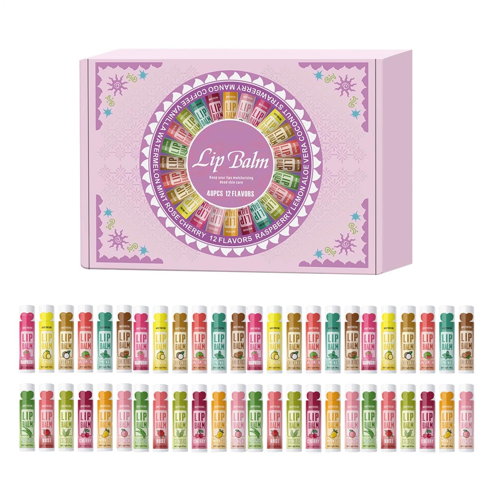 Baume À Lèvres Naturel 48 Pièces 12 Parfums Set De Beauté Baume À Lèvres Rouge Brillant - Pour Filles Femmes Routine Quotidienne Déplacements Bureau Maison Voyage Fête