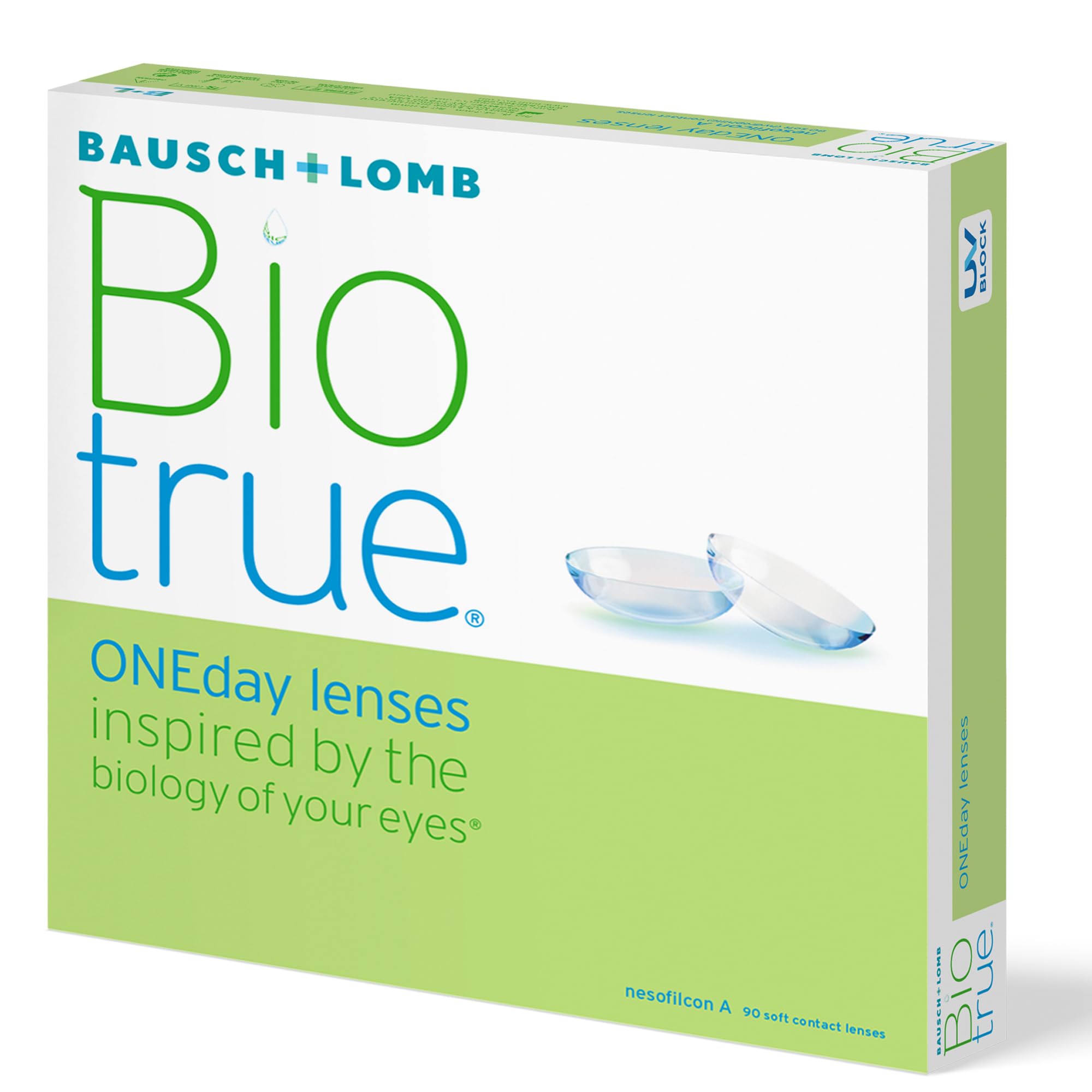 Biotrue Oneday spherical daily lenses - comfortable see even in dry eyes - with UVA/UVB protection!The spherical biotrue oneday daily lenses made of high-quality hydrogel material prevent the eyes from drying out of the tear fluid, because they contain the same water content as the natural cornea (78 %) and imitate the function of the lipid layer, which minimizes the evaporation of the tear film.The Biotrue Oneday Spheric was specially designed to correct myopia or hyperopia (short or farsightedness).Thanks to dehydration protection, they hardly dry out: Even after 16 hours of contact lenses, the moisture content is reduced only slightly (by about 1.5 %).At the same time, the lenses have high oxygen permeability, which maintains the natural metabolism of the cornea from morning to evening.This ensures the daily lenses for a permanently pleasant fit and comfortable, sharp vision in everyday life.The soft lentils are easy and uncomplicated.At the end of the day, the contact lenses are simply disposed of, so that no maintenance is necessary.For this reason, daily lenses are also very hygienic and thus ensure an even less risk for possible eye irritation than monthly lenses.Clear and relaxed vision - even during work on digital devices: When working on the computer or other digital devices, the eyes are particularly challenged and often have to process a change from dimmed or bright light.At the same time, concentrated vision reduces the eyelids per minute and less tear fluid is distributed on the eye.With its very high moisture content, the Biotrue Oneday daily lens supports the wetting of the cornea - its eyes remain fresh and clear.In addition, the Biotrue Oneday contact lens blocks a large part of the UVA and UVB radiation and thus serves as additional protection of the eyes.The lenses are available in all common preservation and are suitable for the occasional use of daily lenses because of their simple handling and the high spontaneous tolerance, but are also ideal for contact lens beginners. Ingredients / ingredients Nesofilcon A, water content 78% Address manufacturer/importer Bausch & Lomb Inc., 1400 North Goddman Street, Rochester, NY 14609 USA More The high-quality daily contact lenses from quality manufacturer Bausch + Lomb combine moisture and excellent wearing comfort with a clear, sharp view in all common preservation.These oxygen -permeable lenses are easy to use - also confirmed by contact lens beginners.Thanks to its pleasant carrying system, this daily contact lens is suitable for both contact lens entrants and for experienced contact lens carriers.In contrast to other one-day contact lenses, the Biotrue OneDay lenses contain the highest water content and, thanks to dehydrating protection, preserve it for up to 16 hours.For all contact lenses- even with dry eyes who wish high-quality daily lenses to correct short or farsightedness with high moisture and additional UVA/UVB protection. Biotrue ONEday sphärische Tageslinsen - komfortables Sehen auch bei trockenen Augen - mit UVA/UVB-Schutz! Die sphärischen Biotrue ONEday Tageslinsen aus hochwertigem Hydrogel-Material verhindern die Austrocknung der Augen nach dem Vorbild der Tränenflüssigkeit, denn sie enthalten den gleichen Wassergehalt wie die natürliche Hornhaut (78 %) und imitieren die Funktion der Lipidschicht, die die Verdunstung des Tränenfilms minimiert. Die Biotrue ONEday spheric wurde speziell konzipiert zur Korrektur einer Myopie oder Hyperopie (Kurz- oder Weitsichtigkeit). Dank Dehydrierungsschutz trocknen sie kaum aus: Selbst nach 16 Stunden kontaktlinsentragen reduziert sich der Feuchtigkeitsgehalt nur geringfügig (um etwa 1,5 %). Gleichzeitig haben die Linsen eine hohe Sauerstoffdurchlässigkeit, die den natürlichen Stoffwechsel der Hornhaut von morgens bis abends aufrecht erhält. Damit sorgen die Tageslinsen für ein dauerhaft angenehmes Tragegefühl und komfortables, scharfes Sehen im Alltag. Das Auf- und Absetzen der weichen Linsen ist einfach und unkompliziert. Am Ende des Tages werden die Kontaktlinsen einfach entsorgt, sodass kein Pflegeaufwand notwendig ist. Tageslinsen sind aus diesem Grund auch sehr hygienisch und sorgen so für ein noch geringeres Risiko für eventuelle Augenirritationen als Monatslinsen. Klares und entspanntes Sehen - auch während der Arbeit auf digitalen Geräten: Bei Arbeiten am Computer oder anderen digitalen Geräten sind die Augen besonders gefordert und müssen häufig einen Wechsel von gedimmtem oder grellem Licht verarbeiten. Gleichzeitig reduziert konzentriertes Sehen die Lidschläge pro Minute und es wird somit weniger Tränenflüssigkeit auf dem Auge verteilt. Mit ihrem sehr hohen Feuchtigkeitsgehalt unterstützt die Biotrue ONEday Tageslinse die Benetzung der Hornhaut - Ihre Augen bleiben frisch und klar. Darüber hinaus blockiert die Biotrue ONEday Kontaktlinse einen Großteil der UVA- und UVB-Strahlung und dient so als zusätzlicher Schutz der Augen. Die Linsen sind in allen gängigen Sehstärken erhältlich und eignen sich wegen ihrer einfachen Handhabung und der hohen Spontanverträglichkeit für die gelegentliche Nutzung von Tageslinsen, sind aber auch ideal geeignet für Kontaktlinsen-Einsteiger. INHALTSSTOFFE / ZUTATEN Nesofilcon A, Wassergehalt 78% ANSCHRIFT HERSTELLER/IMPORTEUR Bausch&Lomb Inc., 1400 North Goddman Street, Rochester, NY 14609 USA MehrDie hochwertigen Tages-Kontaktlinsen vom Qualitätshersteller Bausch + Lomb kombinieren Feuchtigkeit und hervorragenden Tragekomfort mit klarer, scharfer Sicht in allen gängigen Sehstärken. Diese sauerstoffdurchlässigen Linsen sind einfach in der Handhabung - bestätigt auch von Kontaktlinsen-Einsteigern. Dank ihres angenehmen Tragekomforts eignet sich diese Tages-Kontaktlinse sowohl für Kontaktlinsen-Einsteiger als auch für erfahrene Kontaktlinsenträger. Im Gegensatz zu anderen Ein-Tages-Kontaktlinsen, enthalten die Biotrue ONEday-Linsen den höchsten Wassergehalt und bewahren ihn dank Dehydrierungssc