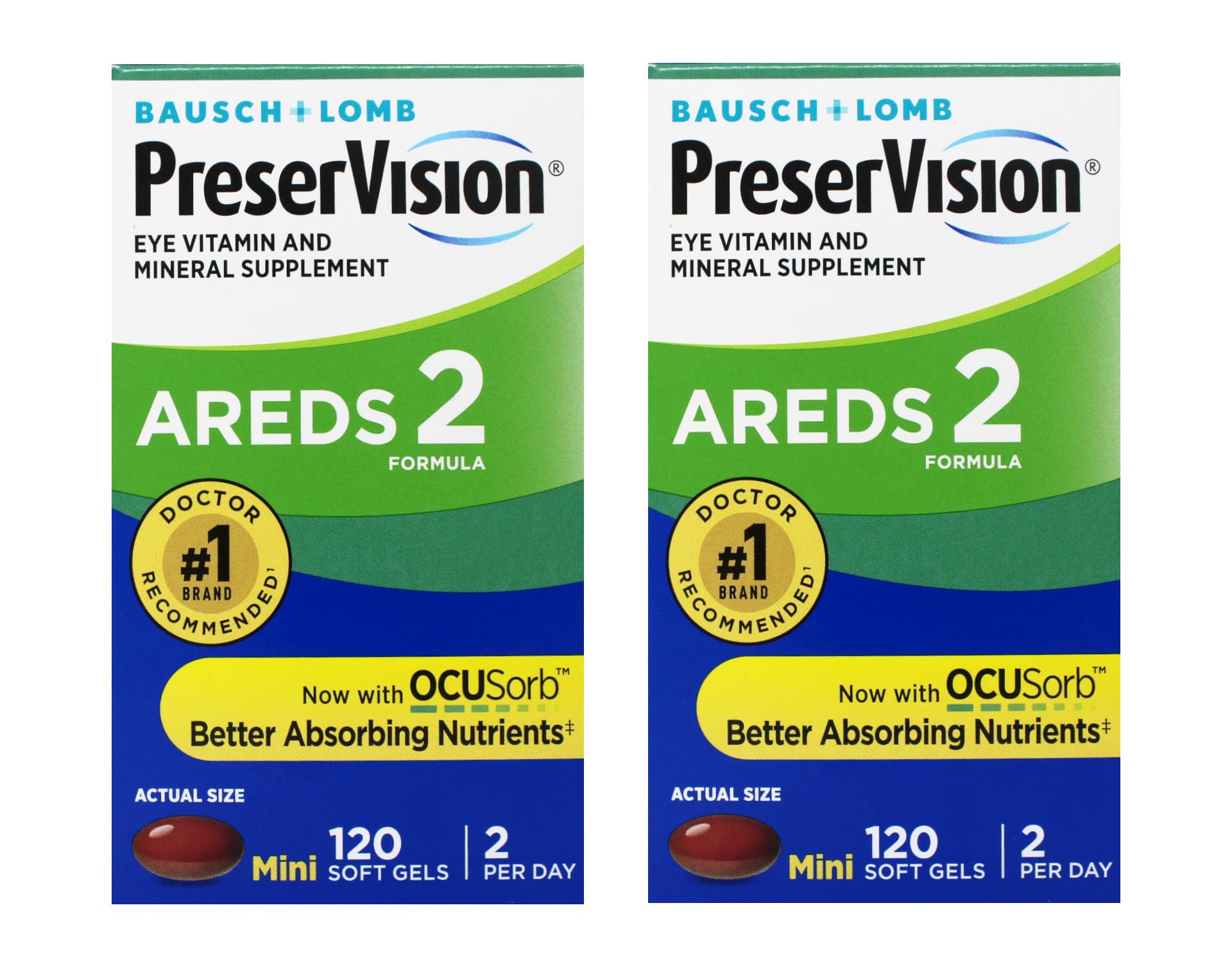 Bausch + Lomb PreserVision AREDS 2 Eye Vitamin & Mineral Supplement with OCUSorb with Lutein & Zeaxanthin from 120 Soft Gels (MiniGels) (Pack of 2)
