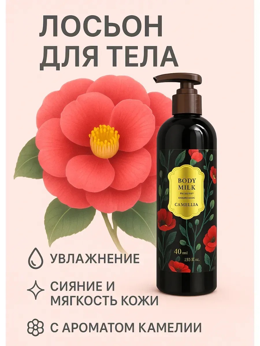 лосьон для тела, увлажняющий лосьон, аромат камелии, витамин Е, пантенол, ретинол, пептиды, уход за сухой кожей, уход за чувствительной кожей, антивозрастной лосьон, косметическое молочко, лосьон после душа, питание и восстановление кожи, лосьон без липкости, гладкая кожа, ароматный лосьон