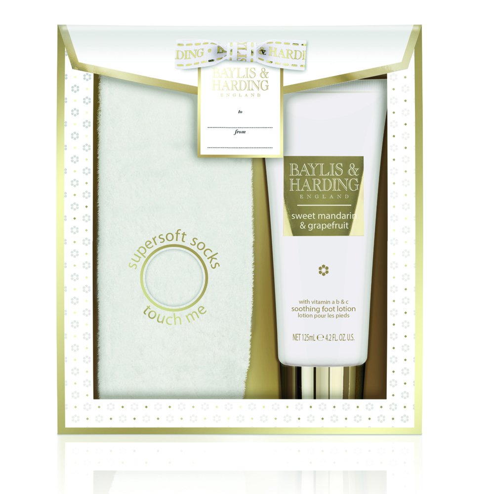 Baylis & Harding’s Sweet Mandarin & Grapefruit Festive Feet Gift Set makes a fabulous stocking filler or secret Santa gift for this Christmas. This fantastic festive gift set contains everything you need for a perfect pedicure at home. The 125ml Soothing Foot Lotion is enriched with vitamins A, B and C for super moisturisation whilst supersoft White Socks keep feet supple and cosy warm. Sweet Mandarin & Grapefruit is Baylis & Harding’s most popular scent - refreshing and balancing with spicy and zesty notes.
