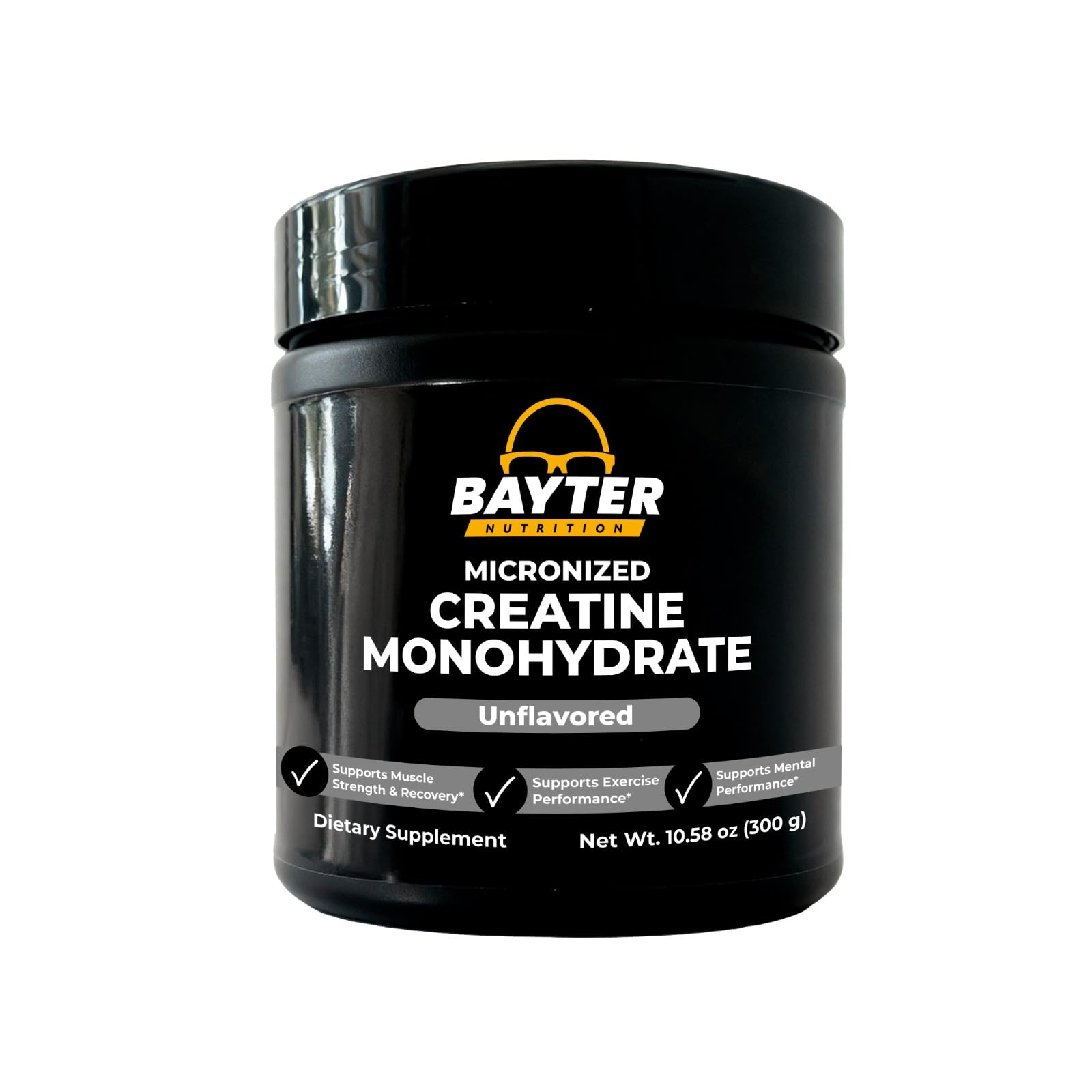 Bayter Nutrition Micronized Creatine Monohydrate Powder is a high-quality supplement that supports muscle strength, power, and overall athletic performance. Each serving delivers 5 grams of pure micronized creatine monohydrate to help fuel intense workouts, improve training capacity, and support muscle recovery. This unflavored formula mixes easily into water, juice, or your favorite pre- or post-workout shake without altering taste. Made with Non-GMO and gluten-free ingredients, it's a clean and simple choice for athletes and fitness enthusiasts at any level.Trusted Quality Purity Non-GMO, gluten-free, soy-free, and third-party tested for quality and purity. Made for people who demand clean, reliable performance support. . Unflavored Clean Formula No flavors, no sweeteners, no fillers, and no added sugars. Easily stack with protein, pre-workout, or recovery drinks without altering taste. . Micronized for Easy Mixing Our micronized creatine powder dissolves smoothly in hot or cold liquids with no grit or clumping—perfect for pre-workout, post-workout, or daily supplementation. Fuels Cellular Energy (ATP) Creatine helps replenish ATP, the body's primary energy source, supporting improved workout performance and faster post-exercise recovery. Supports Strength, Power Performance Each serving delivers 5g of pure micronized creatine monohydrate, a clinically studied ingredient that helps support strength, power output, and endurance during high-intensity training.