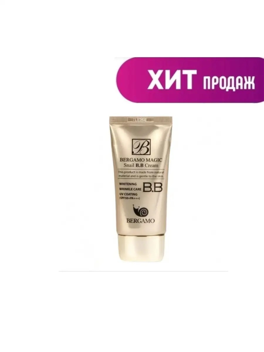 BB крем для лица Bergamo Magic Snail BB Cream SPF 50 PA+++ бб крем тройного действия с улиточным фильтратом.Выравнивает тон кожи, маскирует недостатки, сужает поры, придает лицу матовый ровный "фарфоровый" оттенок. Оттенок крема после нанесения подстраивается под цвет кожи. Омолаживает, восстанавливает, убирает морщинки, питает и увлажняет кожу. Защита от солнечных лучей SPF 50+.ВВ крем помимо косметического, имеет еще и уходовое действие благодаря входящему в состав фильтрату слизи улиток. На человеческую кожу фильтрат слизи действует следующим образом: восстанавливает, придает эластичность и прочность, увлажняет, снимает кожные воспаления, заживляет следы от акне ББ крем средней плотности, имеет насыщенный бежевый оттенок. Не выбеливает лицо и подстраивается под оттенок кожи.Хорошо растушевывается, маскирует поры и не создает эффекта маски на лице. ББ крем для лица корея Сразу после нанесения имеет влажный финиш, который через несколько минут становится матовым.
