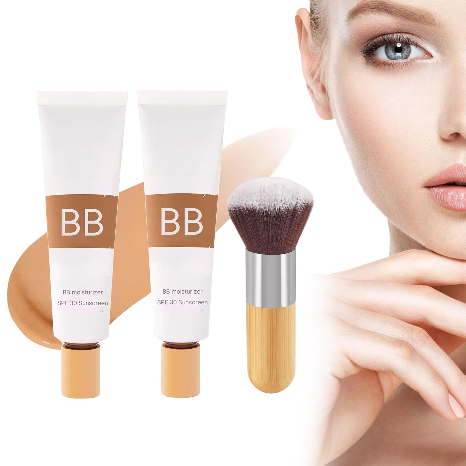 Bb Blur Tinted Moisturizer Spf 30 Bb Cream Tinted Moisturizer Smooths Moisturizing Coverage Foundation Cream with Brush Full Coverage Oil-Free Light Hydrates (2PCS-Natural)
