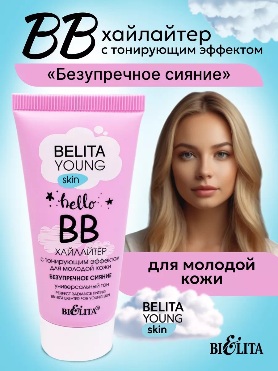 Belita Young Skin BB Cream Highlighter with a Tinted Effect for Young Skin, FLAWLESS GLOW. A new addition to the popular BELITA YOUNG line—a collection of facial care products that can not only preserve the health and youth of your skin but also transform your look, protecting your skin from irritation and harmful factors such as dust, dehydration, and UV rays. The line includes products that provide an instant effect—this is the BB Highlighter with a tinted effect for young skin, "Flawless Glow." BB Highlighter helps create a striking makeup look and an amazing radiance. BB Highlighter: perfectly conceals imperfections and skin imperfections, gives your skin a soft, magical shimmer, superbly moisturizes the skin, and eliminates dryness and flaking. To create a soft glow, apply a small amount of highlighter cream to your face and distribute it evenly. To create an intense glow, apply a second layer of the cream highlighter to specific areas of the face: cheekbones, bridge of the nose, inner corner of the eye, under the brow bone, above the upper lip, and the center of the chin. Requests: BB highlighter can be given as a cute present for Valentine's Day / a gift for March 8th / a birthday gift / New Year / to mom / girlfriend / sister / yourself beloved just like that / BB highlighter from bielita / surprise for a beloved friend sister Bibi makeup base corrective primer highlighter for makeup for dry face with a radiance effect for face for body BB cream Belarusian Belita Bielita pharmacy professional cosmetics for makeup primer for face radiance from acne a great gift for women, girls, teenagers, wife a cool replacement for spray, powder, can be applied with a brush Teacher's Day Mother's Day body face highlighter Belita shimmer contouring tanning cosmetics primer liquid sculptor cream blush glitter cream masks stick bronzer makeup shimmer shimmering Bibi Belita enzyme powder Belita Radiance Milk Bronzer Skin Ball Corrector Sculpting Brush Self-Tanner