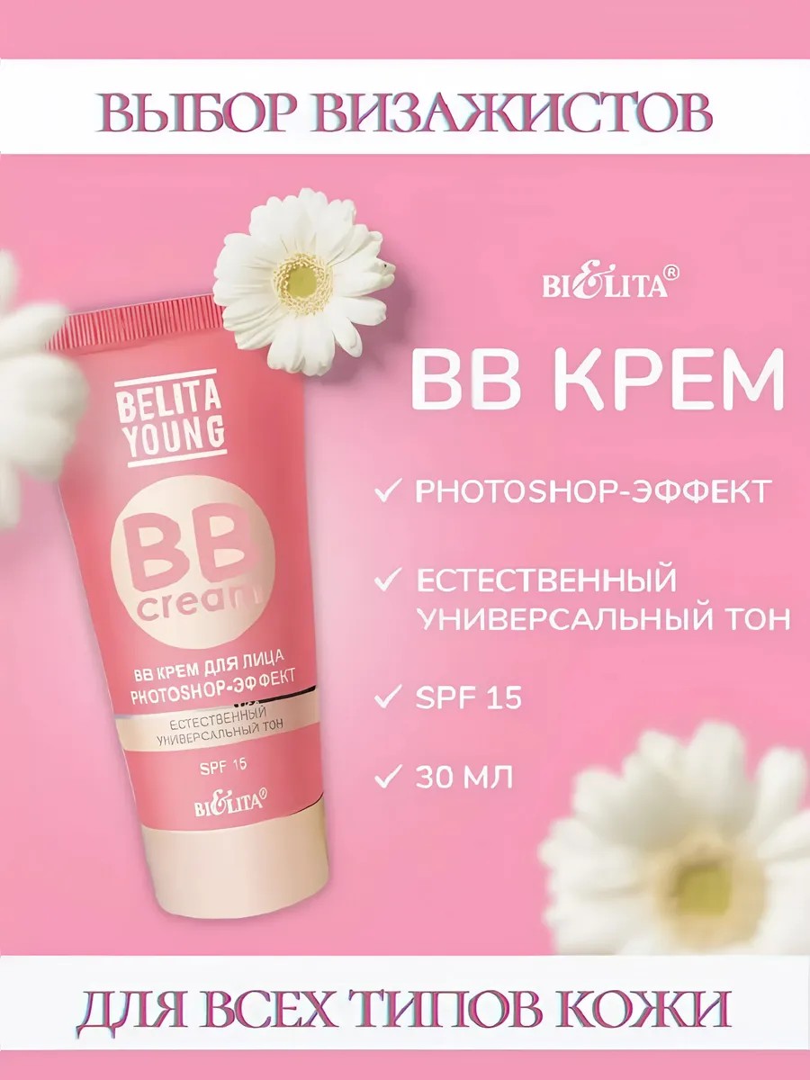 The world's best-selling BB cream! Belita BB Cream Belita Young PHOTOSHOP-EFFECT SPF 15, 30 ml is recommended by makeup artists for achieving a perfectly even skin tone! This foundation BB cream has a natural, universal shade, adapts to skin color, and instantly evens out skin tone.