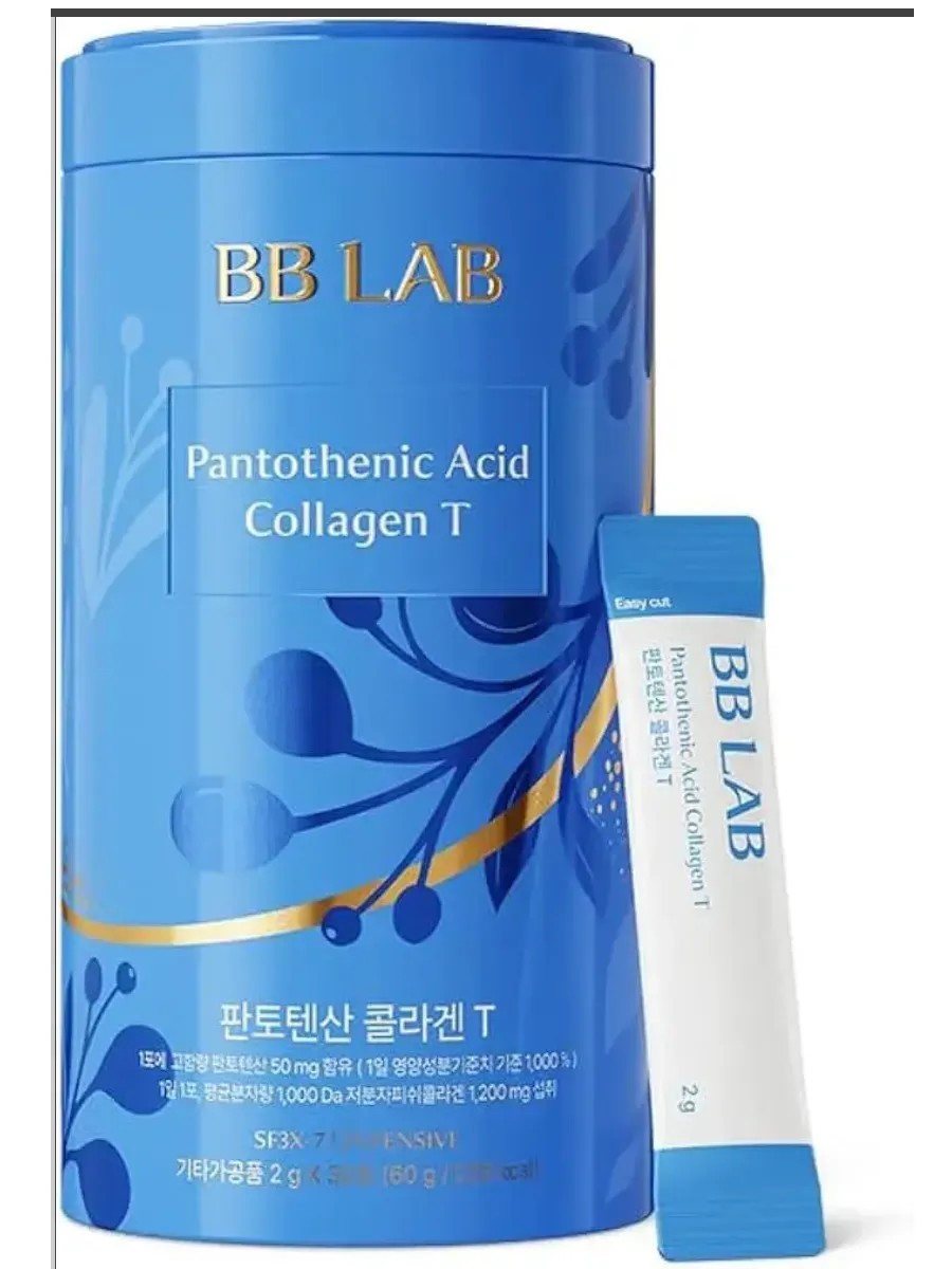 A functional food supplement from the Korean brand BB LAB, combining pantothenic acid and low molecular weight collagen.