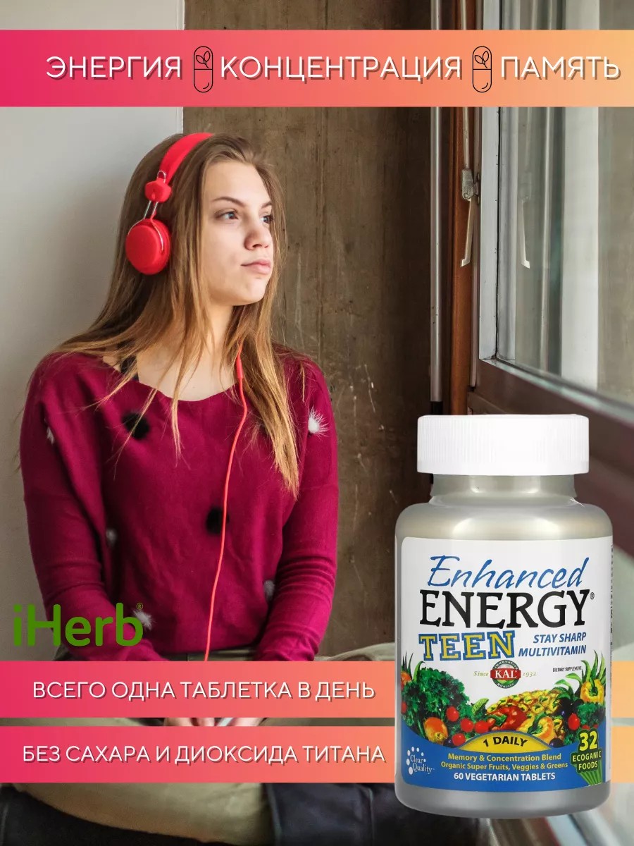 Бад для тинейджеров содержит 12 ценных биологически активных и 9 минеральных соединений, восполняя суточную потребность в них на 100%. Enhanced Energy Teen vegetarian formula предлагает витамины, минералы и запатентованные формулы, а также эквивалент 3 порций фруктов и овощей и экоганических смесей для энергии, защиты кожи и иммунитета.