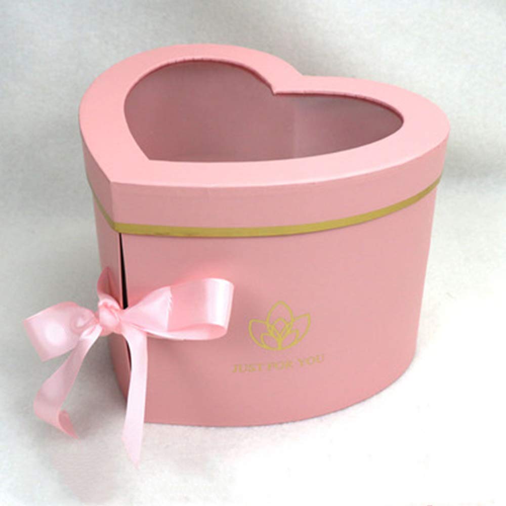 BBJ WRAPS Luxury Heart Shaped Flower Boxes with Lids Florist Double Layer Gift Paper Mache Boxes for Arrangements-9(L) x 8(W) x 6.5(H) (Pink)