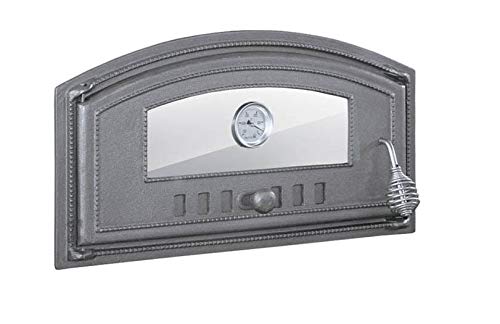 BBQrolling Pizzaofentür Premium 490x280 Backofentür aus Gusseisen mit Glas + Thermometer Offentür Brotofentür/Links/