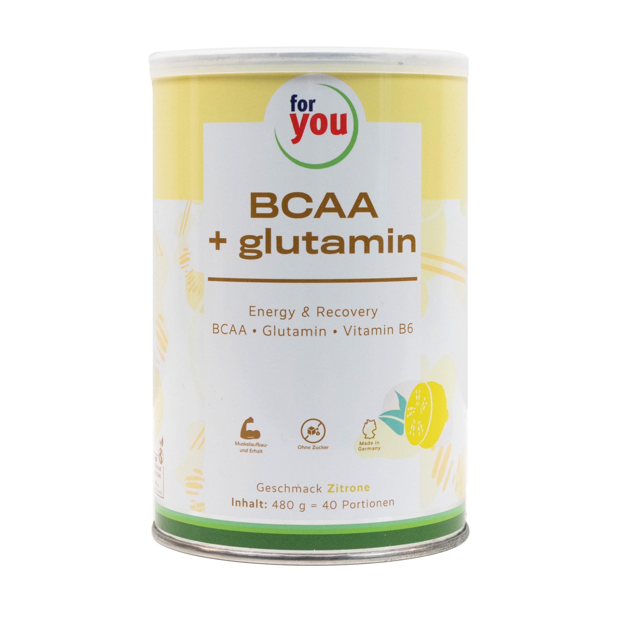?? for you DEIN GESUNDHEITSPARTNER,Wir arbeiten mit lizenzierten Markenrohstoffen mit bester Bioverfügbarkeit und minimieren die Verwendung von Zusatzstoffen. Unsere Produkte sind frei von Schwermetallen & Gentechnik. Alle unsere Produkte werden in HACCP- und GMP-zertifizierten Betrieben in Deutschland hergestellt. ?? L-GLUTAMIN,Versetzt mit L-Glutamin unterstützt die Kombination mit BCAA die Regeneration nach dem Training und das Wachstum von Muskeln, zudem kann es zur Darmgesundheit beitragen und sorgt für ein normales Immunsystem. ?? BCAAS PULVER,Die 3 Aminosäuren Isoleucin, Leucin und Valin sind wesentlich für den Erhalt und Aufbau von Muskeln, Ausdauer, fördern die Fettverbrennung und sind Energielieferant bei körperlicher Anstrengung. ?? HOCHDOSIERT UND REIN,Wir verwenden reinste Aminosäuren, beste Aromen und natürliche Farbstoffe. Die for you BCAA’s sind ein hochwertiges und wirksames Pulver mit Glutamin und B6. Unser Pulver ist produziert in DE und darüber hinaus zuckerfrei und vegan. Das hochwertige BCAA-Pulver besticht mit einem erfrischendem Zitrone-Geschmack. ?? WORKOUT BOOSTER,Unsere BCAAs kombiniert mit Glutamin und Vitamin B6 halten die Leistung während dem Training hoch und verkürzen die Phase der Regeneration nach einer harten Fitness Einheit,Ideal für Kraft- und Ausdauersportler.