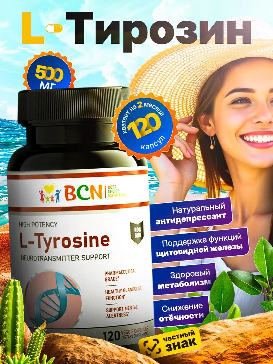 | Состав | L-tyrosine; стеарат магния; микрокристаллическая целлюлоза (оболочка капсулы) |