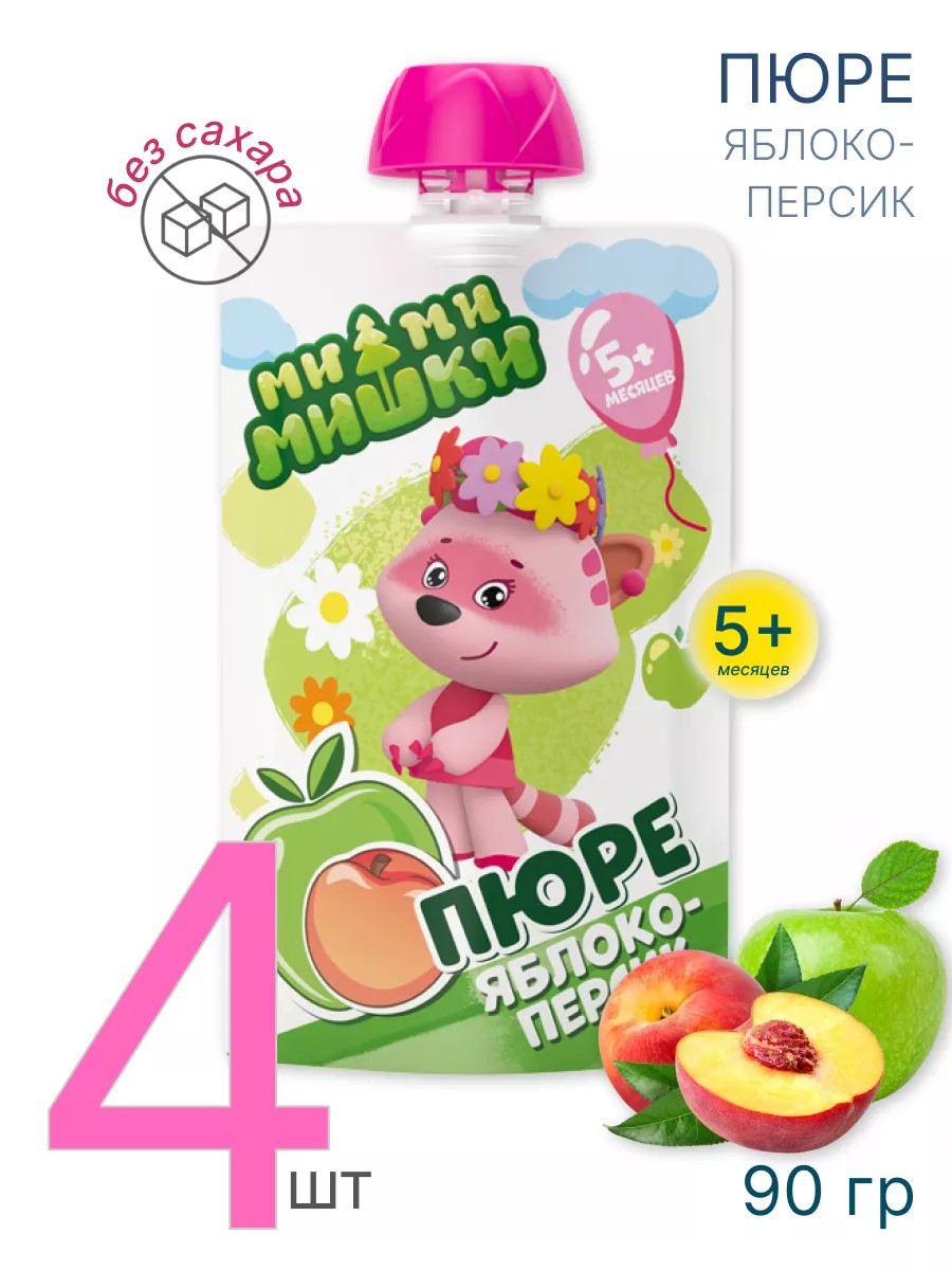 МИ-МИ-МИШКИ Пюре детское Яблоко-Персик без сахара 90 гр, 4 шт