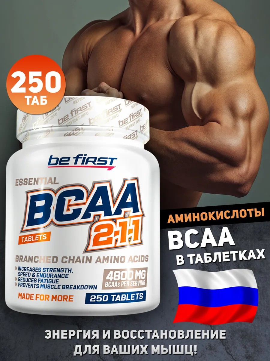 Хочешь построить мышечную массу быстрее и эффективнее ? Устаешь во время тренировок и быстро теряешь мотивацию ? Страдаешь от сильных мышечных болей после занятий ? Тогда тебе просто необходим комплекс аминокислот BCAA от BeFirst !Эта уникальная формула из 3-х незаменимых аминокислот лейцина, изолейцина и валина (в соотношении 2:1:1) - настоящая находка для всех, кто мечтает о красивом рельефном теле. BCAA 2 1 1 от БиФерст помогут тебе: Быстрее набрать мышечную массу, стимулируя синтез белка в мышцах; Снизить болевые ощущения после интенсивных тренировок; Значительно ускорить процесс восстановления мышц после нагрузок; Повысить выносливость и отсрочить наступление усталости во время тренировки; Сохранить набранную мышечную массу при соблюдении диеты.Ты получишь мощный заряд энергии, сможешь выполнить бОльший объем упражнений с максимальной отдачей ! А сокращенное время восстановления позволит чаще посещать тренажерный зал и добиваться еще более впечатляющих результатов.Начни принимать аминокислоты БЦАА в таблетках от BeFirst прямо сейчас - и уже через месяц ты заметишь потрясающие перемены в своем теле ! Дерзай, трудись и добивайся цели вместе с надежным помощником BCAA ! Успехов тебе !
