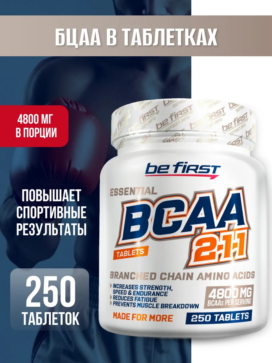 Be First BCAA 2:1:1 Tablets is an effective supplement containing three essential branched-chain amino acids: leucine, isoleucine, and valine.