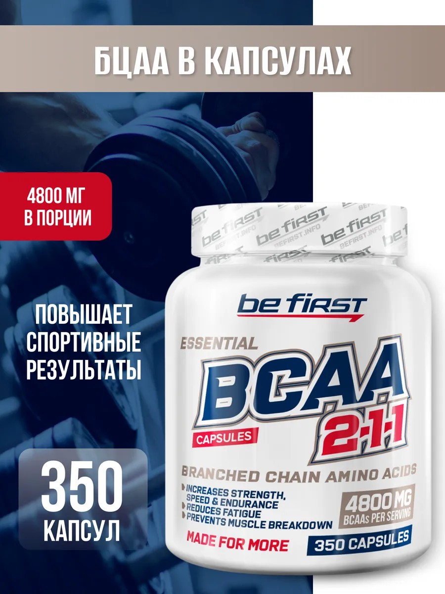 Be First BCAA 2:1:1 Capsules are a high-quality complex of three essential amino acids: L-leucine, L-isoleucine, and L-valine, presented in a convenient capsule form.