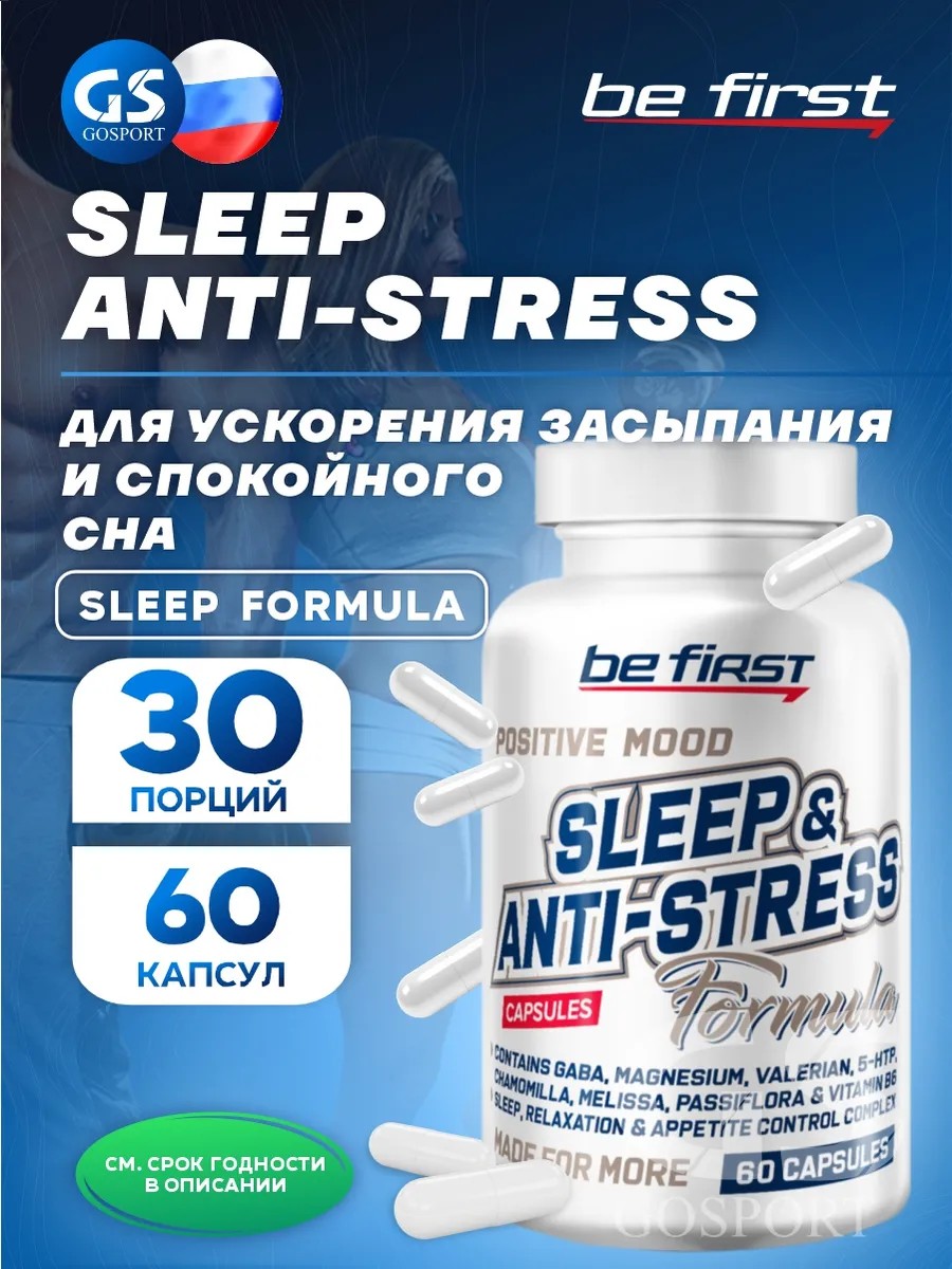 Годен до 22.09.2026. Здоровый сон Sleep & Anti-stress Formula 60 капсул. Anti-Stress Formula от Be First – это комплексная добавка для всех для улучшения качества сна, расслабления, а также для тех кто находится на диете, в основе которого лежат природные растительные экстракты, магний и GABA. Комплекс обеспечивает релаксацию, эффективное восстановление нервных и физических сил, снижение тяги к еде в процессе диеты. ГАМК улучшает энергоснабжение клеток ЦНС за счет улучшения усвоения ими глюкозы, а также стимулирует выработку гормона роста. 5-гидрокситриптофан (5-HTP), являющийся основным действующим веществом экстракта гриффонии. Витамин B6 также требуется для синтеза ГАМК (GABA) и основных нейротрансмиттеров, от баланса которых зависит нормальное состояние психики. Активные вещества растительных компонентов добавки оказывают мягкое седативное действие, помогая избавиться от тревожности и беспокойства, мешающих заснуть. В результате многостороннего воздействия веществ, составляющих комплекс, даже после трудного дня, осложненного стрессами, Вы сможете легко и спокойно погрузиться в восстанавливающий и освежающий сон.