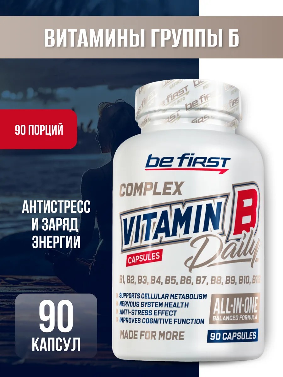Vitamin B complex from Be First will help you withstand stress, cope with fatigue, restore your immune system, and return to work more quickly after illness or injury.