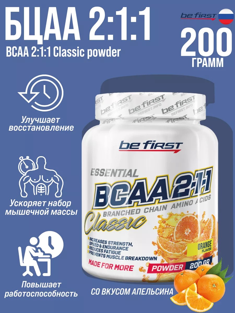 be first BCAA порошок 2 1 1 CLASSIC, бца апельсин, 200г