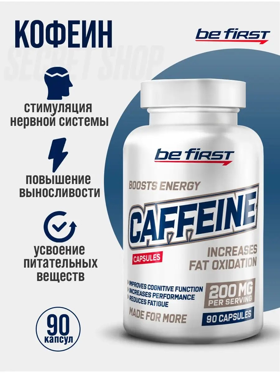Caffeine capsules from Be First are a powerful central nervous system stimulant and a thermogenic that activates metabolism.