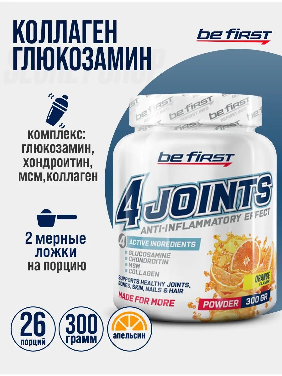Be First BF Коллаген глюкозамин 4joints Powder 300 г, Апельсин