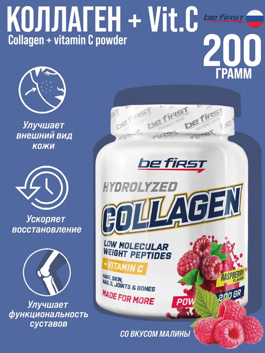 | Комплектация | 1 банка Be First Collagen + vitamin C 200 гр; коллаген для кожи волос связок суставов |