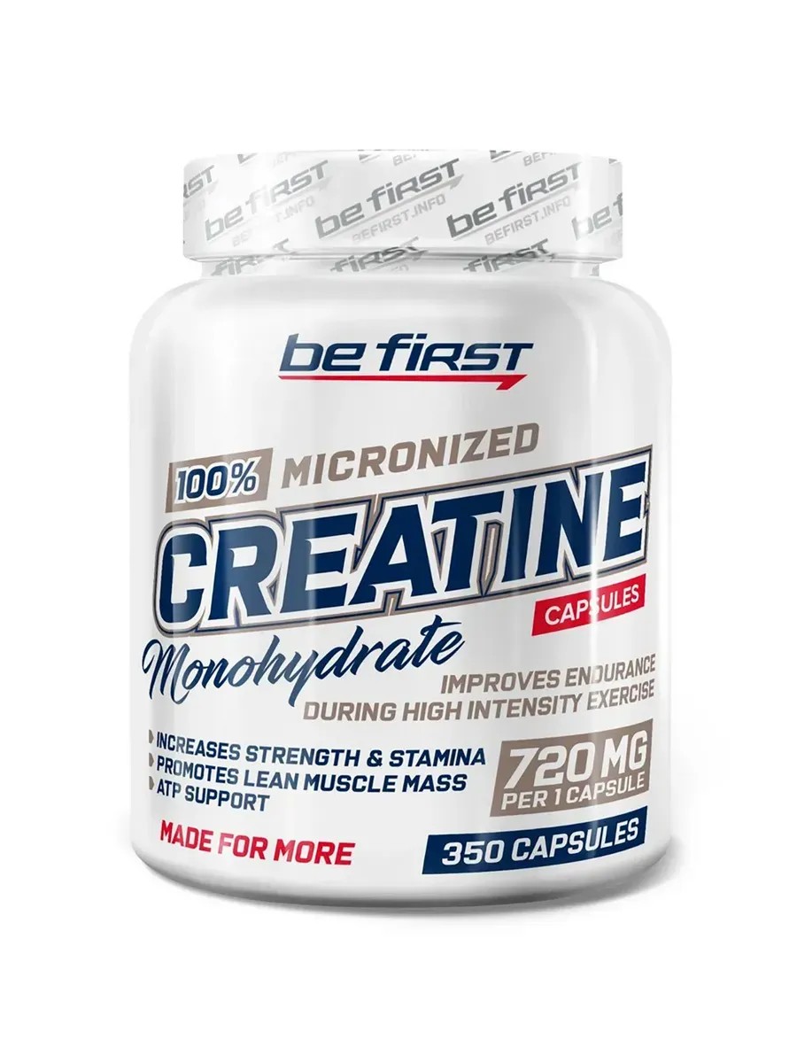 Be First Creatine Monohydrate Capsules играет важную роль в процессах энергетического обмена, происходящих в мышечных и нервных клетках.