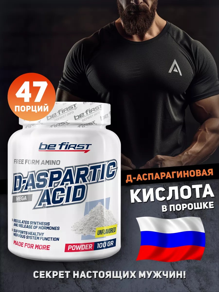 Мужская сила и здоровье - важны для каждого! Хотите улучшить потенцию, поднять уровень тестостерона и самочувствие? Тогда вам нужен натуральный тестобустер на основе д аспарагиновой кислоты (DAA)! Этот удивительный продукт помогает организму вырабатывать больше мужского гормона тестостерона. А значит, вы почувствуете прилив сил и энергии, улучшите спортивные результаты и сексуальную активность. Д аспарагиновая кислота - отличный способ вернуть былую мощь и выносливость для мужчин любого возраста. Это натуральное вещество благотворно влияет на центральную нервную систему, улучшает память и внимание, усиливается потенция. Также помогает повысить подвижность и количество сперматозоидов, что важно для фертильности. Принимайте этот мощный тестостероновый бустер для спорта ежедневно после еды, 1-2 раза в день. Уже через месяц регулярного приема BeFirst DAA вы заметите прилив сил и энергии. Станет легче справляться с физическими нагрузками, а результаты тренировок улучшатся. Повышение тестостерона - залог мужского здоровья и активности. Доказано, что если тестостерон в дефиците - это ведет к проблемам со здоровьем и снижению качества жизни. Не упустите шанс вернуть себе силу, энергию и полноценную мужскую жизнь с помощью натурального тестобустера на основе d аспарагиновой кислоты!