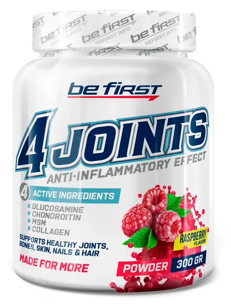 Be First 4Joints Powder 300гр Малина - это комплекс для укрепления связок, хрящей и суставов в порошке. Продукт разработан известным производителем спортивного питания и добавок Be First, который пользуется популярностью среди профессиональных и начинающих атлетов.