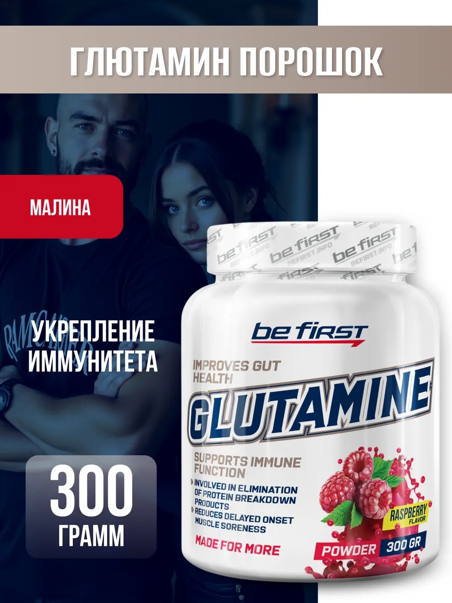 Glutamine Powder 300 гр от Be First Глютамин порошок со вкусом Малины – это мощная добавка, содержащая протеиногенную аминокислоту, которая играет ключевую роль в синтезе мышечных белков и строительстве иммунных клеток. До 60% свободных аминокислот в наших мышцах составляют глютамин, и его концентрация в крови превышает уровень любой другой аминокислоты. Это связано с тем, что глютамин участвует во множестве процессов в организме, что делает его активным эндогенным соединением.