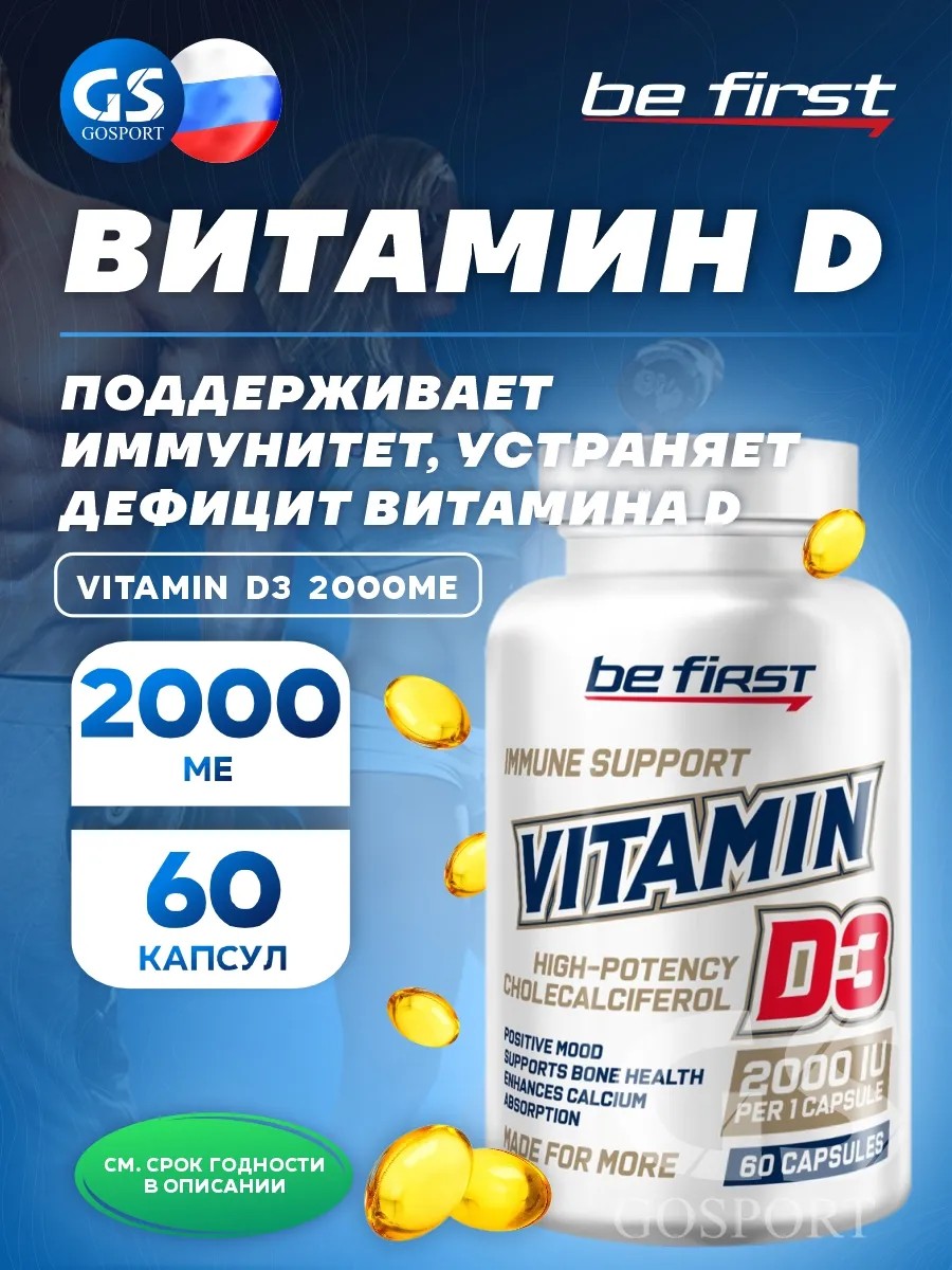 Be First Витамин Д3 2000 для здоровья и иммунитета 60 капсул