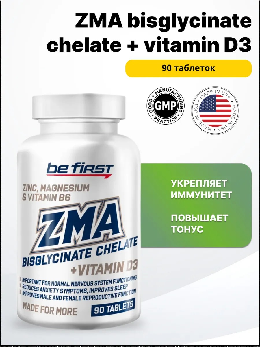 Be First ZMA bisglycinate chelate + Витамин D3 90 таб