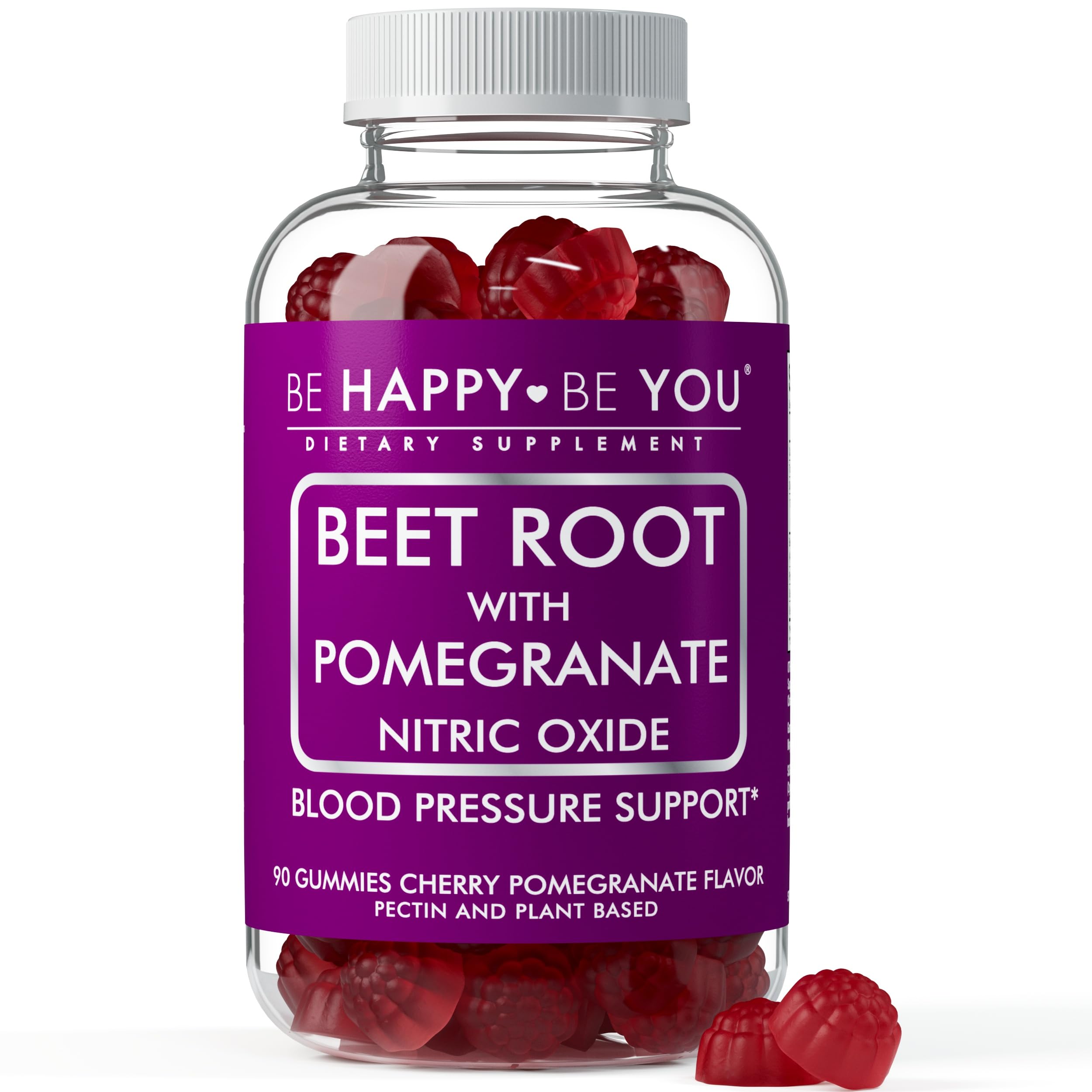 Be Happy Be You Beetroot with Pomegranate Gummies Nitric Oxide Booster & Blood Pressure Support Cherry Pomegranate Flavor Vegan, Gelatin-Free, Pectin-Based 90 Ct