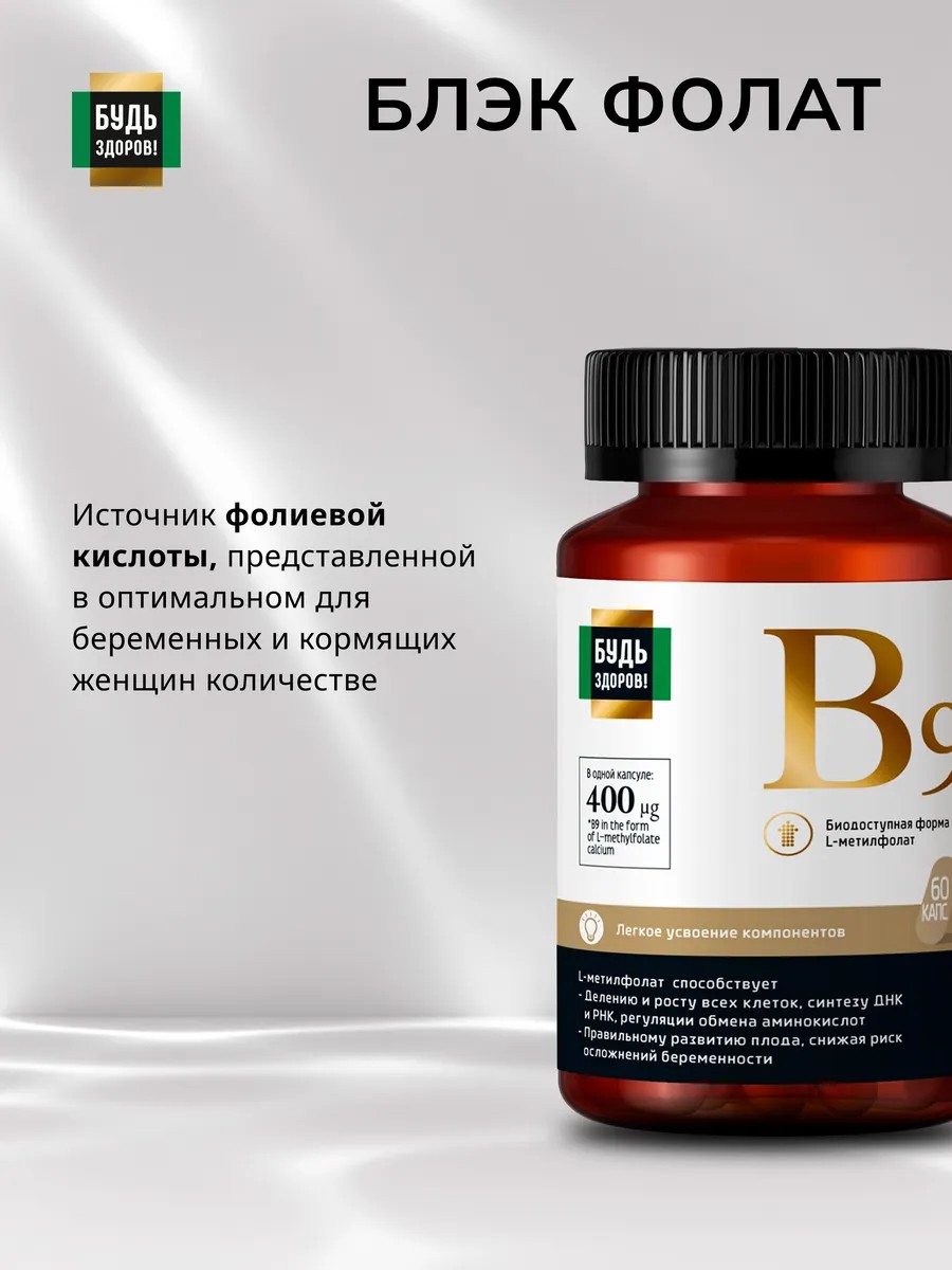 Будь здоров! Блэк Фолат 400мкг 60шт