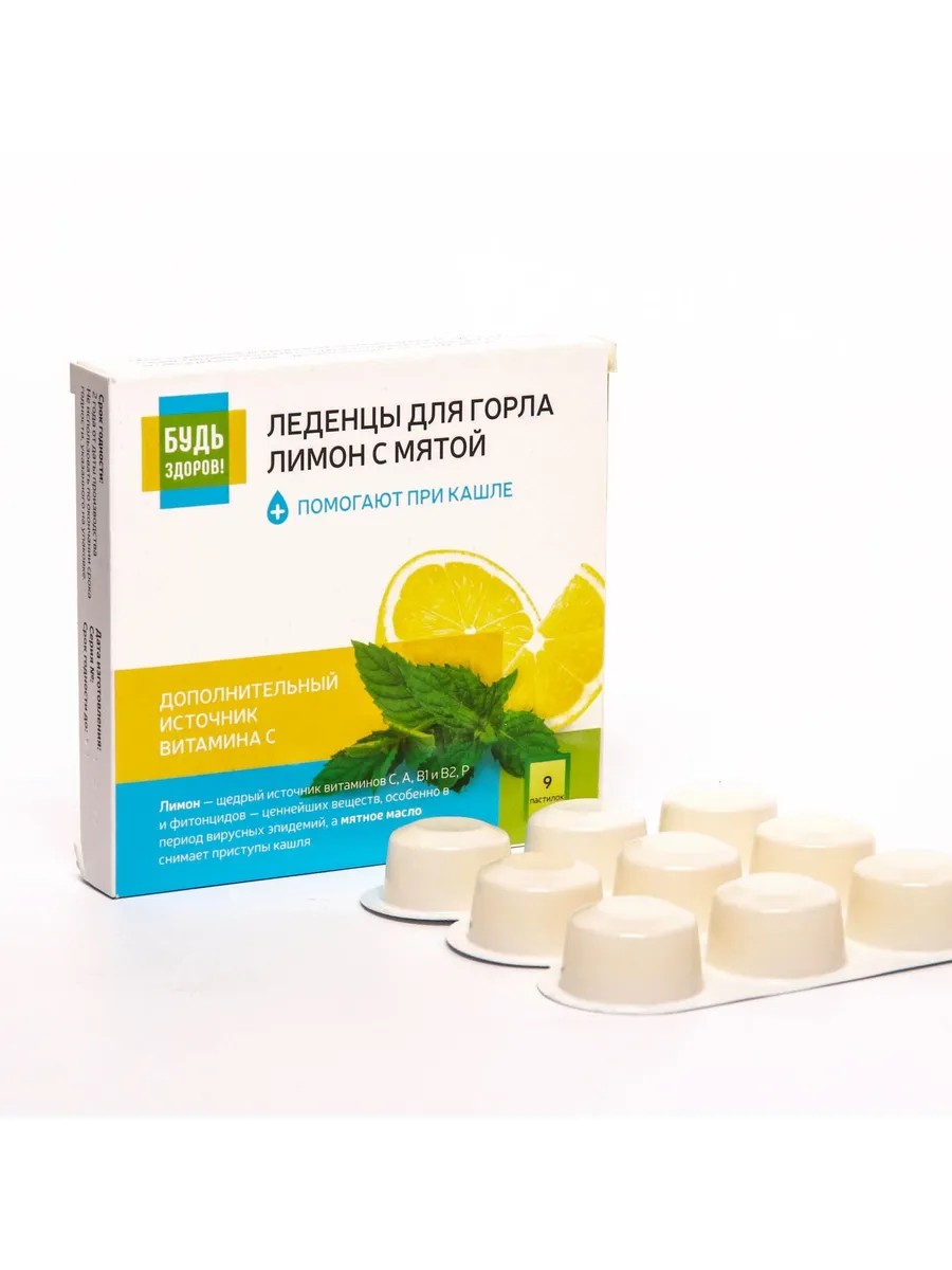 Будь здоров! Леденцы для горла лимон с мятой 9 шт
