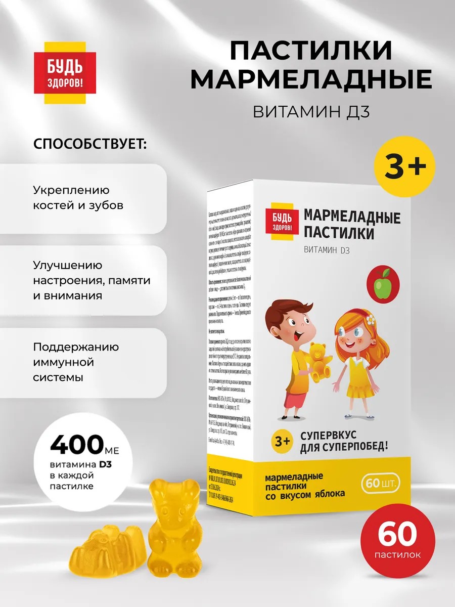 Будь здоров! Мармеладный Витамин Д3 яблоко 3+ 60шт