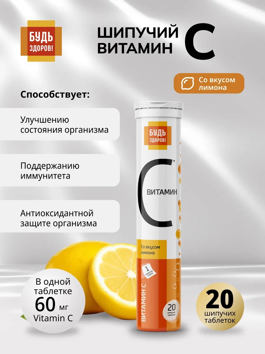 Будь здоров! Шипучий Витамин С лимон20шт