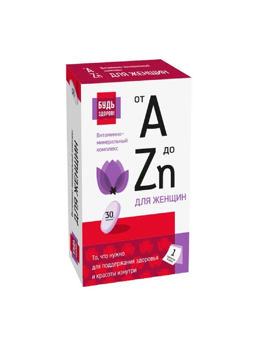 | Торговое наименование | биологически активная добавка к пище "Витаминно-минеральный комплекс для женщин от А до Zn" (таблетки массой 1250 мг) |