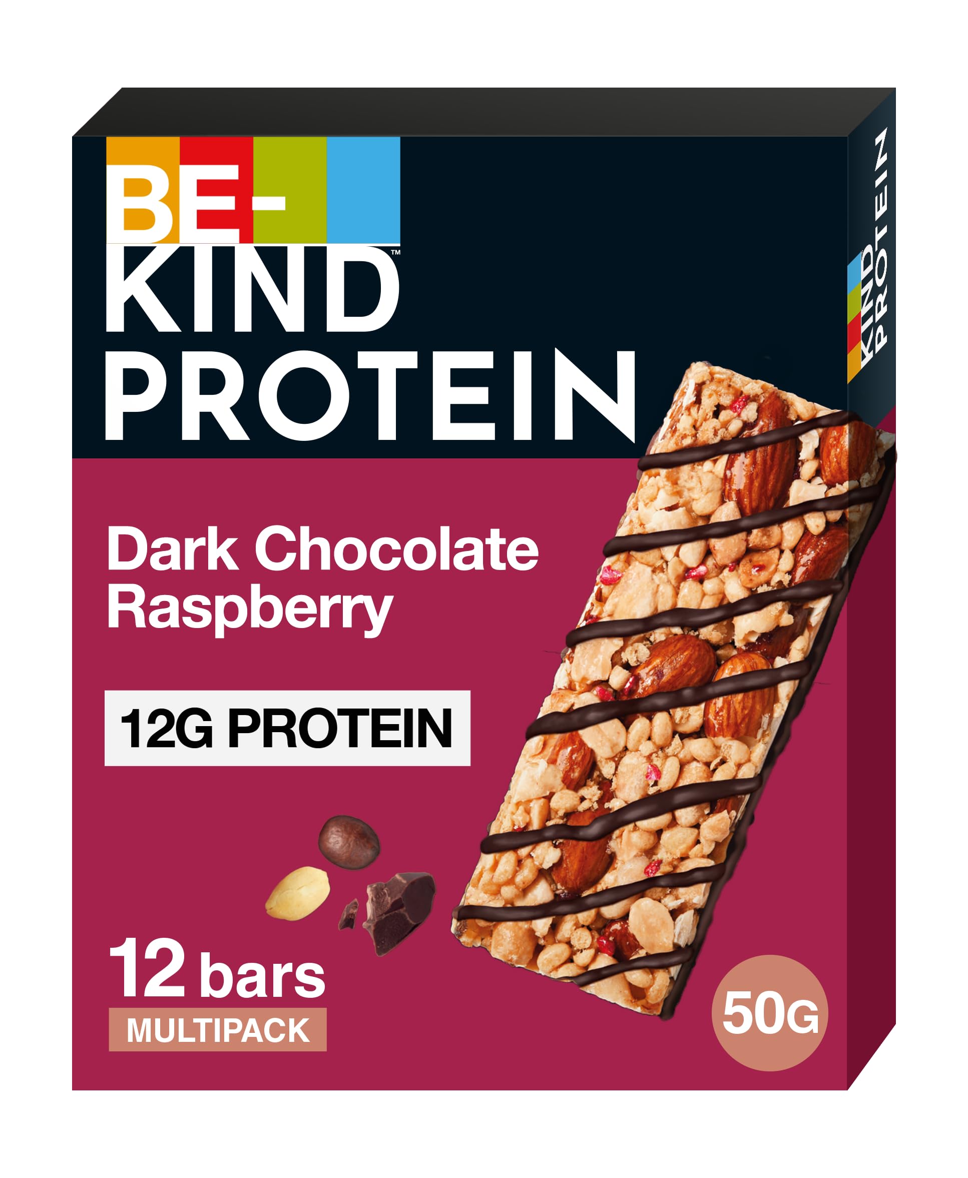 Peanuts and whole almonds meet raspberry and a smooth dark chocolate base. Gluten-free. No artificial colors, flavors, or preservatives. 1 Ingredient: Nuts 12g. Protein ingredients you can see and pronounce. Full of flavor. No secrets. BE-KIND give it a try! BE-KIND is more than a name. It's a commitment: to make bars that don't compromise. Only the best ingredients. Packed with wholesome nutrients. And always full of flavor. INGREDIENTS Ingredients: Peanuts, Dark Chocolate (Sugar, Cocoa Mass, Cocoa Butter, Low Fat Cocoa Powder, Soy Emulsifier, Vanilla Extract), Almonds, Protein Crisps (Soy Protein Isolate, Tapioca Starch, Salt), Fructooligosaccharides, Glucose Syrup, Honey, Butyric Acid, Dried Hips, Blackberries, Natural Flavors. (May contain milk, other nuts). INSTRUCTIONS FOR USE Consume directly as a snack, energy source, or meal replacement. See moreBE-KIND Barres protéinées sans gluten, framboise au chocolat noir, haute teneur en fibres, source de protéines, sans colorants, arômes ni conservateurs artificiels, 12 x 50 g Foncé et texturéDESCRIPTION DU PRODUIT DESCRIPTION DU PRODUIT Les cacahuètes et les amandes entières rencontrent la framboise et un fond doux de chocolat noir. Sans gluten Sans colorants artificiels, arômes ou conservateurs 1 Ingrédient : noix 12 g Ingrédients protéinés que vous pouvez voir et prononcer. Pleine de saveur. Pas de secrets. BE-KIND give it a try! BE KIND est plus qu'un simple nom. C'est un engagement : fabriquer des barres qui ne font pas de compromis. Seuls les meilleurs ingrédients. Plein de nutriments sains. Et toujours plein de saveur. INGRÉDIENTS Ingrédients : arachides, chocolat noir (sucre, pâte de cacao, beurre de cacao, poudre de cacao faible en gras, émulsifiant de soja, extrait de vanille), amandes, crispies protéinées (isolat de protéine de soja, amidon de tapioca, sel), fructooligosaccharid, sirop de glucose, miel, butande. TER, Hip séché. mûres, arômes naturels. (Peut contenir du lait, d'autres noix). MODE D'EMPLOI Consommer directement comme snack, source d'énergie ou substitut de repas. Voir plus