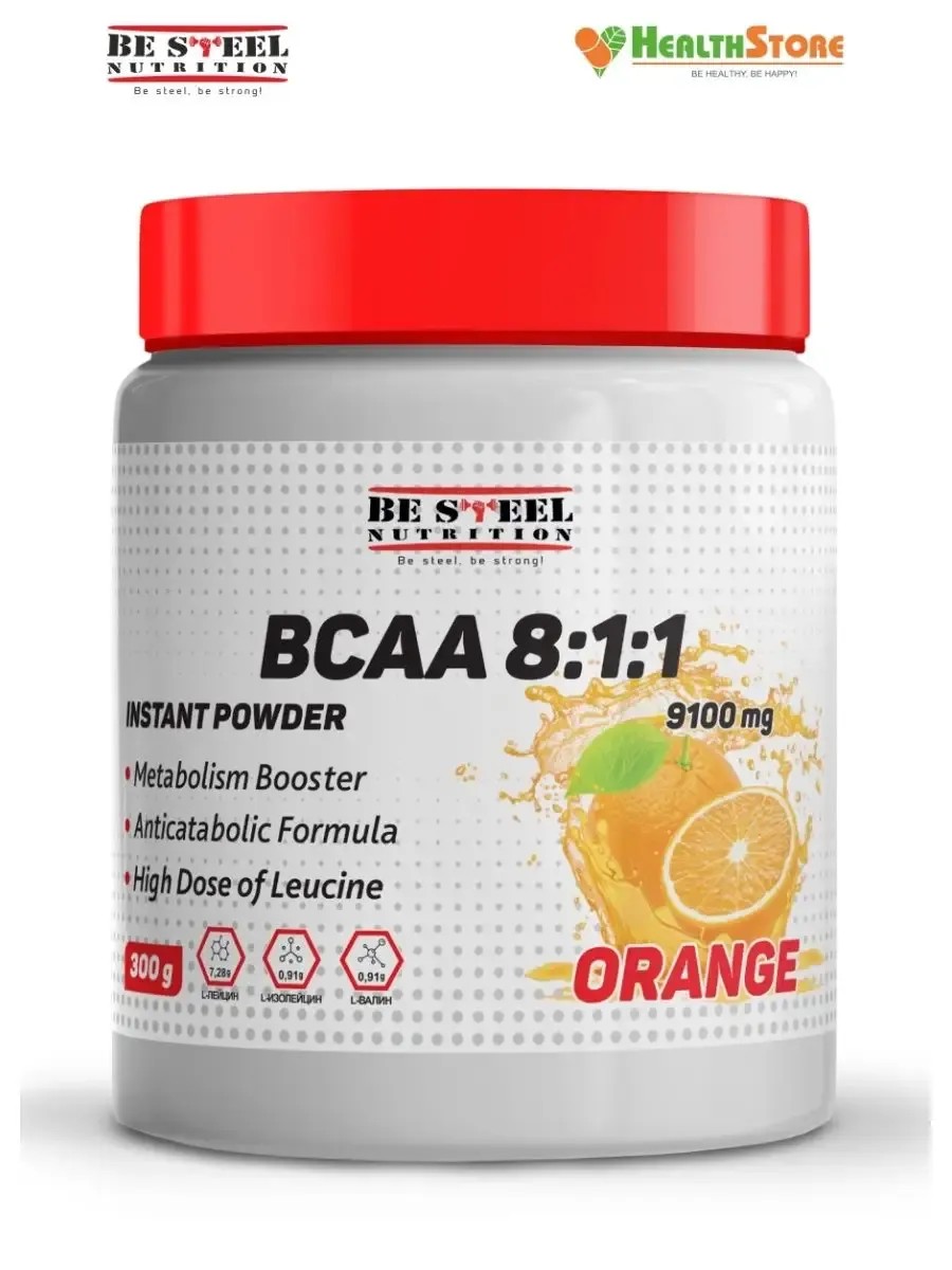 Be Steel Nutrition BCAA 8 1 1 300г (апельсин) аминокислоты БЦАА порошок
