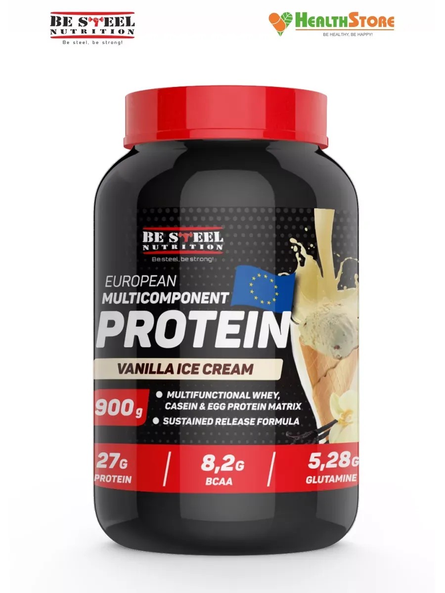 Multi-component protein from Be Steel Nutrition provides the body with pure protein. It contains several types of protein: whey protein concentrate, casein, and imported egg white. Thanks to this combination, the product has the maximum concentration of amino acids (including L-leucine, L-isoleucine, and L-valine), which provides muscles with essential nutrients for a long period of time. Whey protein provides muscle support during training. Casein saturates the body for a long time (7-8 hours) and also significantly improves the muscle recovery process. Egg white is highly anabolic, easily digestible, and allows you to quickly gain lean muscle mass. Directions: Mix one serving (2 heaped scoops - 36g) with 200-300ml of water in a shaker or blender. Sediment may form in the prepared product; shake before use.